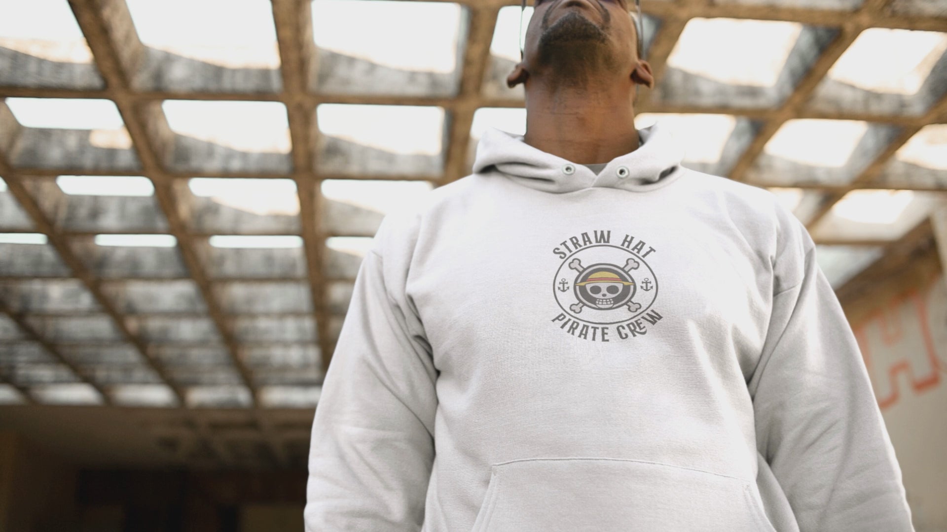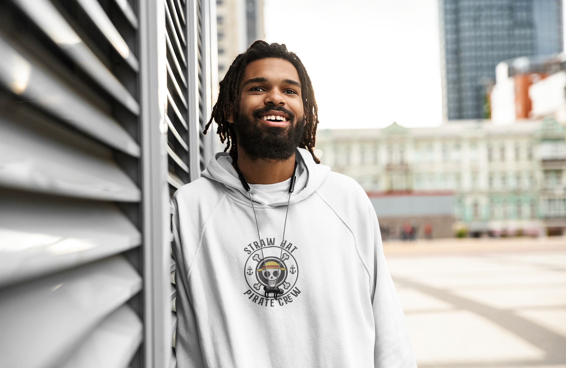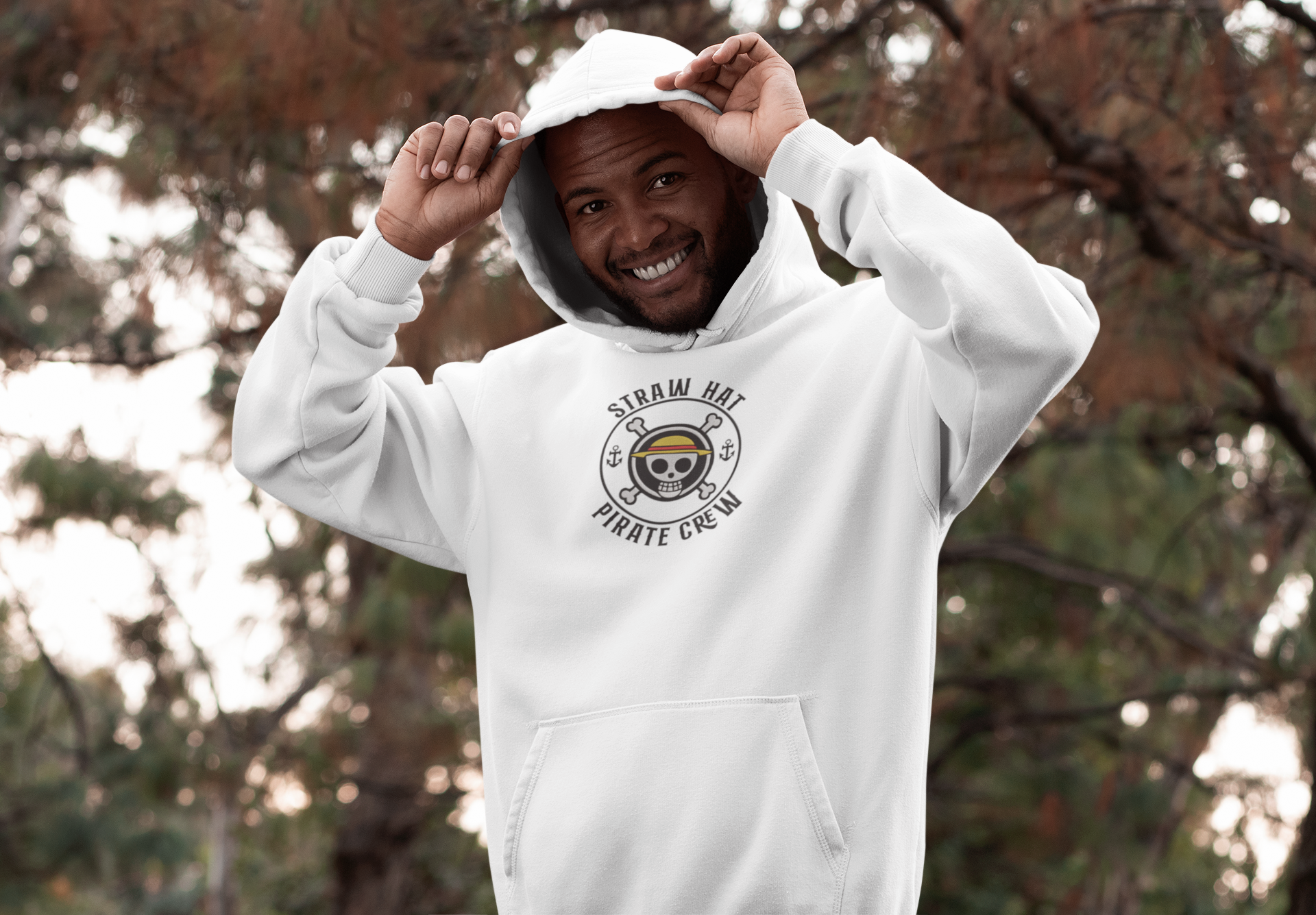 Pullover Hoodie with Embroidered One Piece Straw Hat Pirate Crew Design